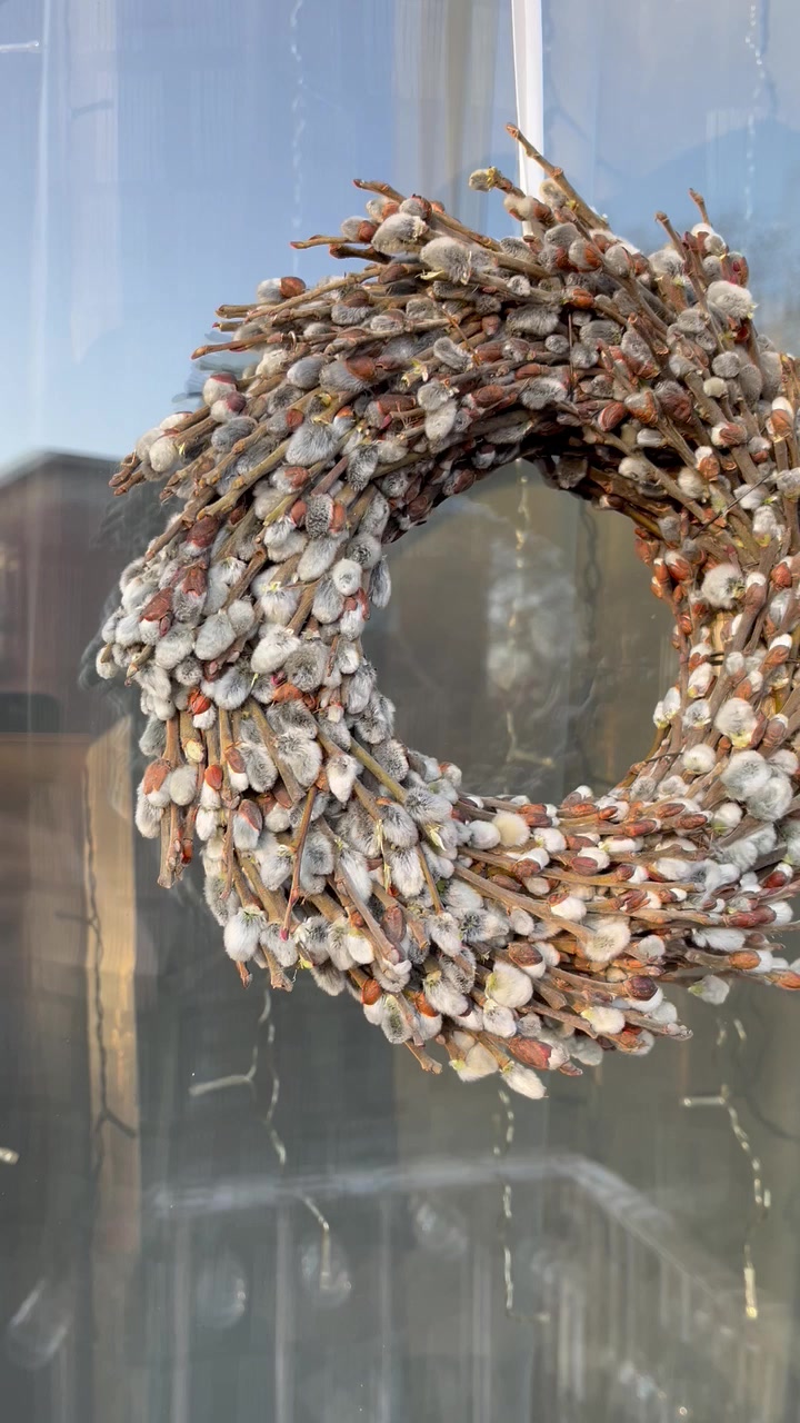 Természetes hangulatú, barkából készült ajtókopogtató, amely tökéletes dísze lehet otthonodnak tavasszal és húsvétkor. A puha, szürke barkák és a natúr ágak harmonikus, letisztult megjelenést kölcsönöznek, így vidám, mégis elegáns hangulatot teremtenek. Ideális választás bejárati ajtóra vagy akár faldekorációként is, hogy friss, tavaszi atmoszférát varázsoljon otthonodba.