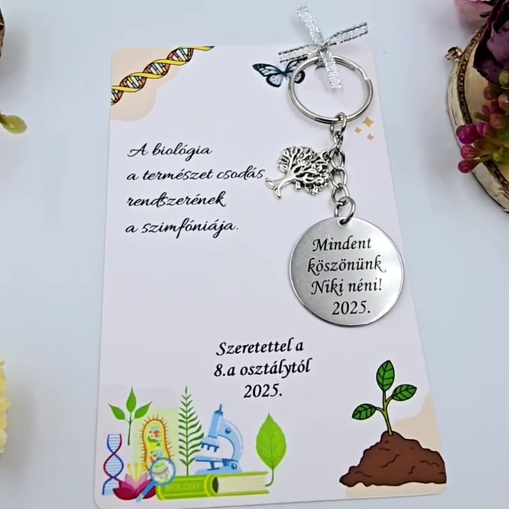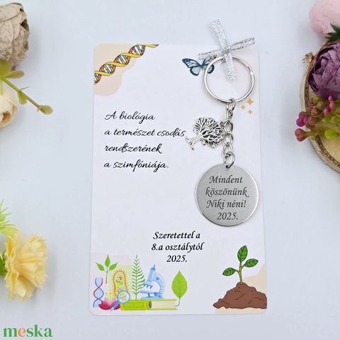 Ajándék biológiatanároknak ballagásra, pedagógusnapra, tanév végére - Gravírozott ballagási kulcstartó ajándékkártyán