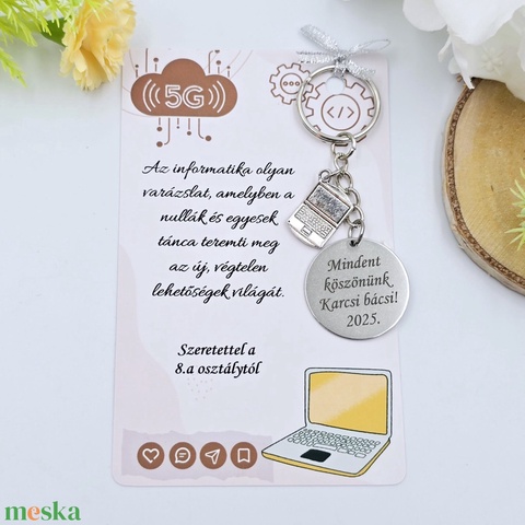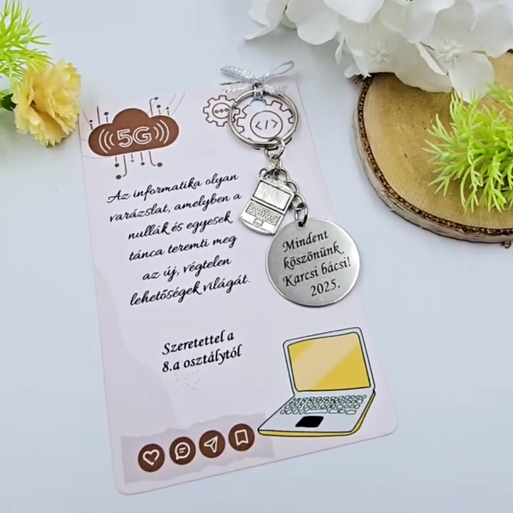 Informatika tanárnak ajándék ballagásra, pedagógusnapra, tanév végére - Gravírozott ballagási kulcstartó ajándékkártyán