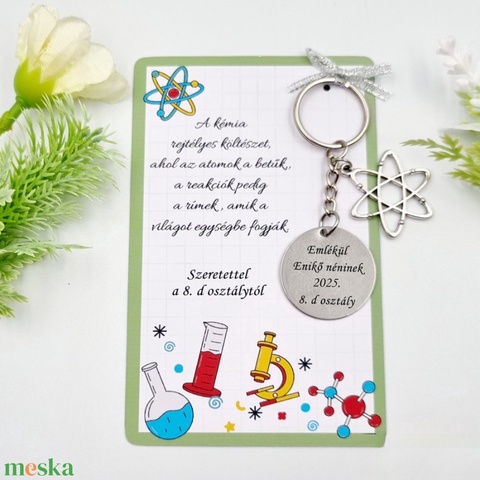 Kémia tanároknak ajándék ballagásra, pedagógusnapra, tanév végére - Gravírozott ballagási kulcstartó ajándékkártyán