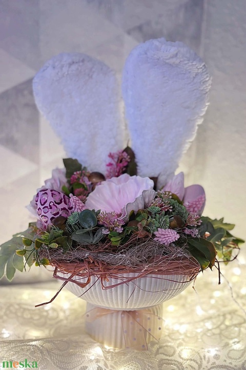 - Anyag/Összetevő kerámai kaspó, oázis, drót, művirág, kerámia tojás, mű levelek és zöldek, pamut