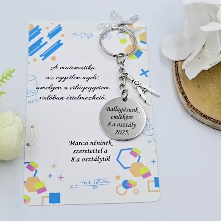 Ajándék matematikatanároknak ballagásra, pedagógusnapra, tanév végére - Gravírozott ballagási kulcstartó ajándékkártyán