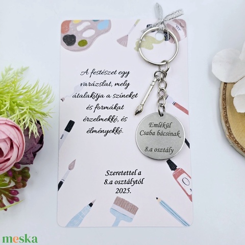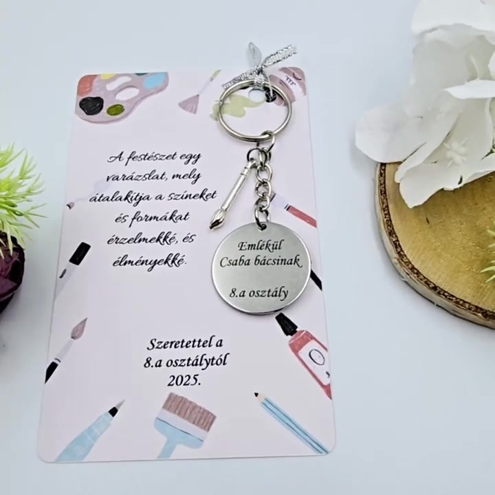 Ajándék rajztanároknak ballagásra, pedagógusnapra, tanév végére - Gravírozott ballagási kulcstartó ajándékkártyán