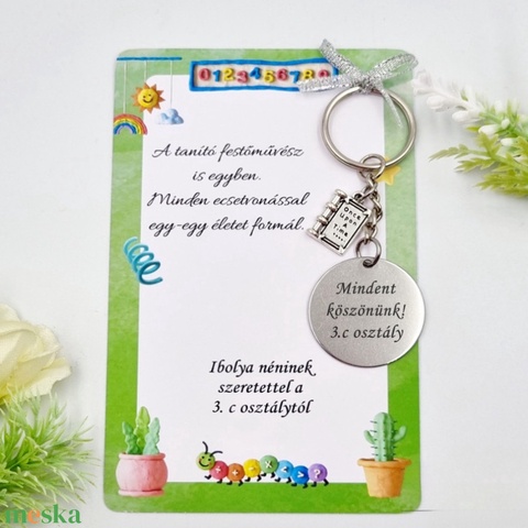 Ajándék tanítóknak, tanárnak ballagásra, pedagógusnapra, tanév végére - Gravírozott ballagási kulcstartó ajándékkártyán