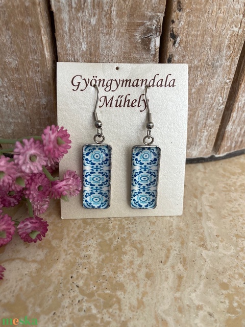 Üveglencsés nemesacél divatékszer! - kék mozaik