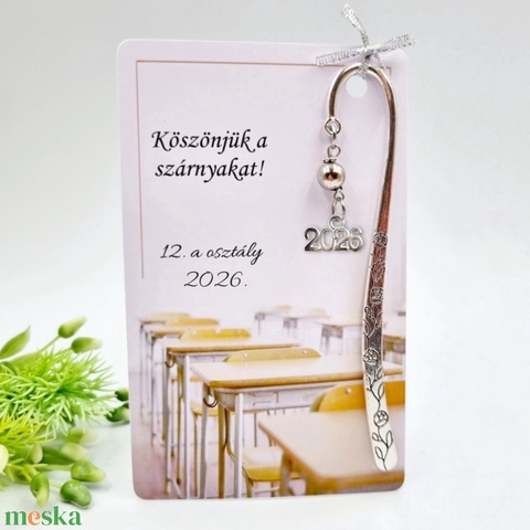 Ajándék tanároknak ballagásra, pedagógusnapra, tanév végére - Könyvjelző 2026 évszám charmmal, ajándékkártyán