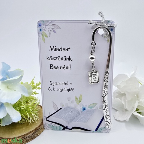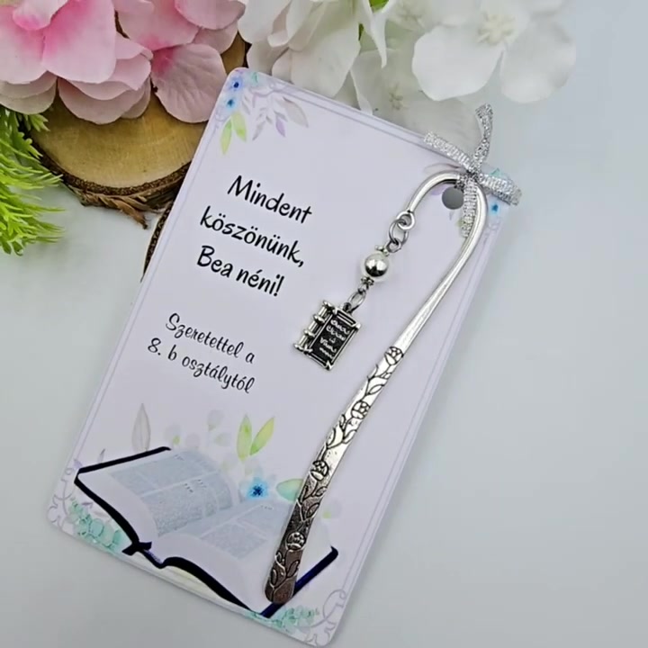 Ajándék magyartanároknak ballagásra, pedagógusnapra, tanév végére - Könyvjelző könyv charmmal, ajándékkártyán