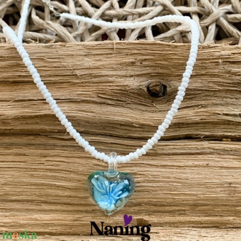 Gyöngynyaklánc - szív üvegmedállal
