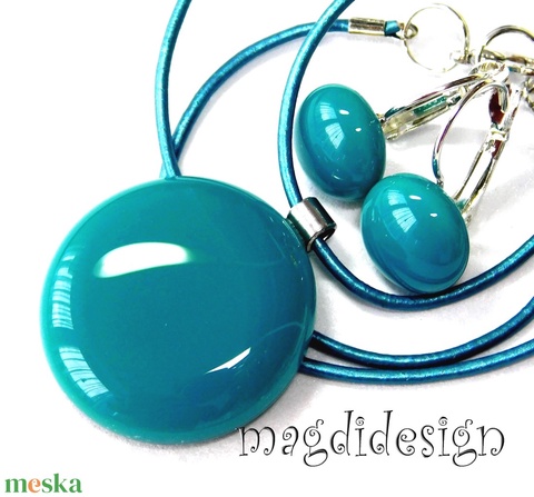 Türkiz üvegékszer szett, nyaklánc, kapcsos fülbevaló - Ballagásra, születésnapra, névnapra
