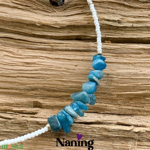 Gyöngynyaklánc - kék apatit ásványcsipsz betéttel