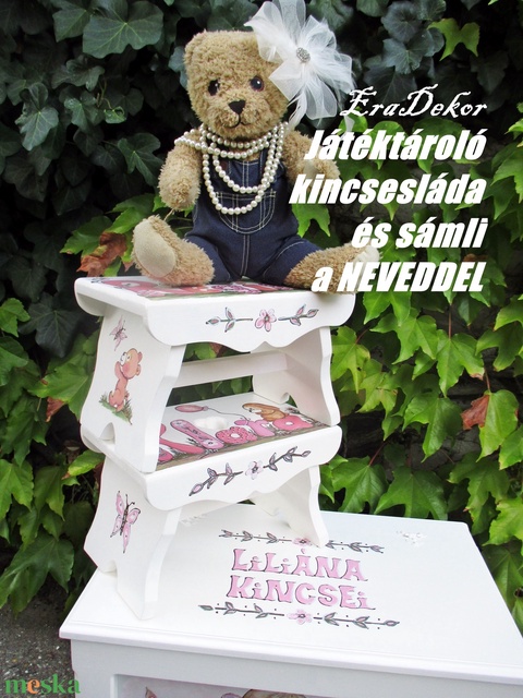 gyerekszoba bútorok, romantikus antikolt festéssel készült fa ajándéktárgyak a provence-i stílus jegyében