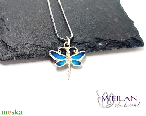 Szitakötő - ezüst tűzzománc medál (türkizkék)