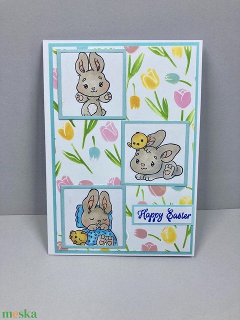 Húsvéti nyuszi képeslap, ajándékkísérő, üdvözlőlap