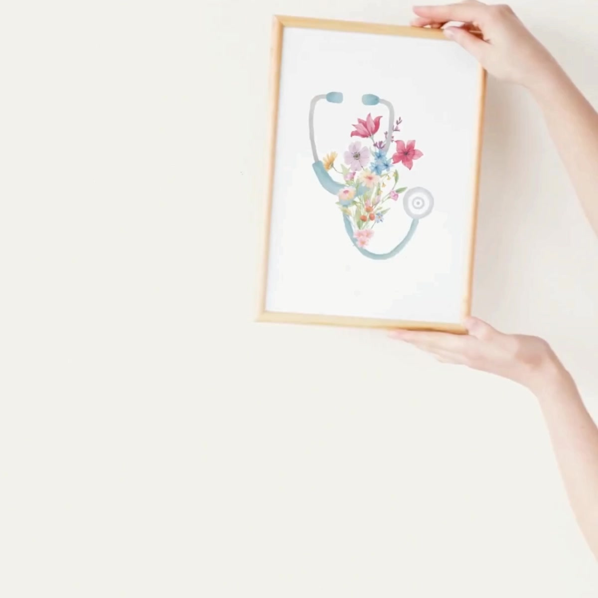 Ez az egyedi, kézzel festett hatású akvarell grafika a PellArt Studio "Hivatás-kollekciójának" első darabja. A stetoszkópot körbeölelő vadvirágok azt a lágyságot és empátiát szimbolizálják, amellyel az egészségügyi dolgozók nap mint nap fordulnak a betegeik felé.