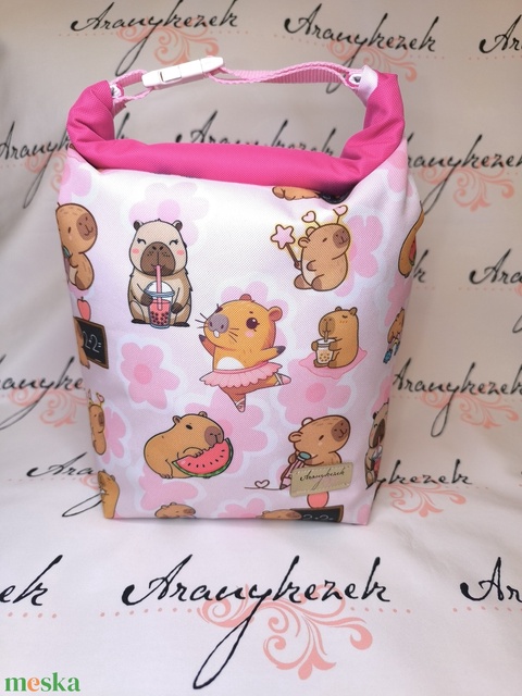 Capybarás-Vízálló uzsonnás tasak kézben vihető-PUL béléssel-Vállon is viheted egy megvásárolható pánttal