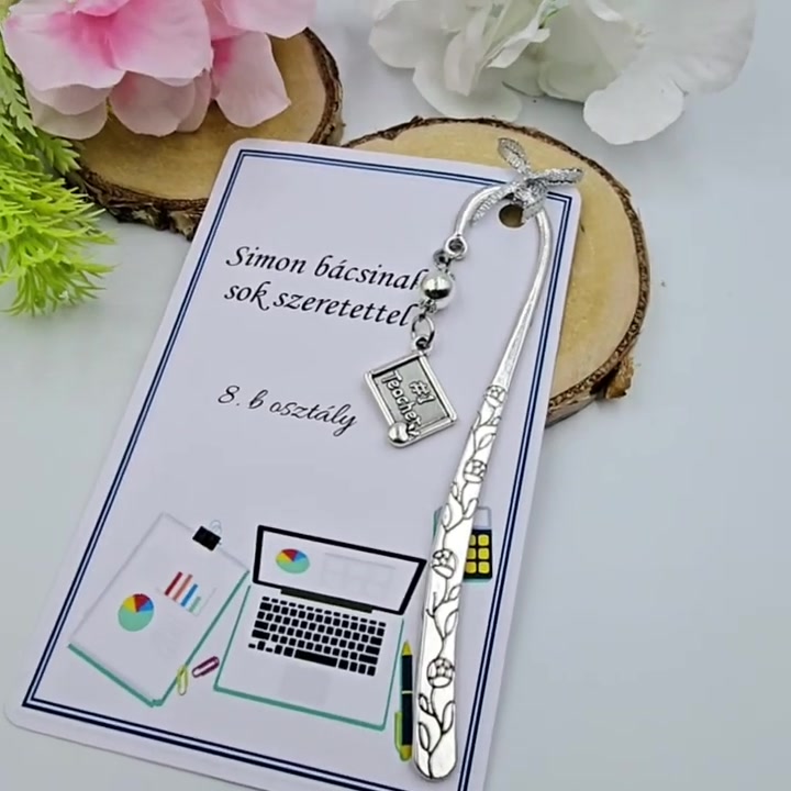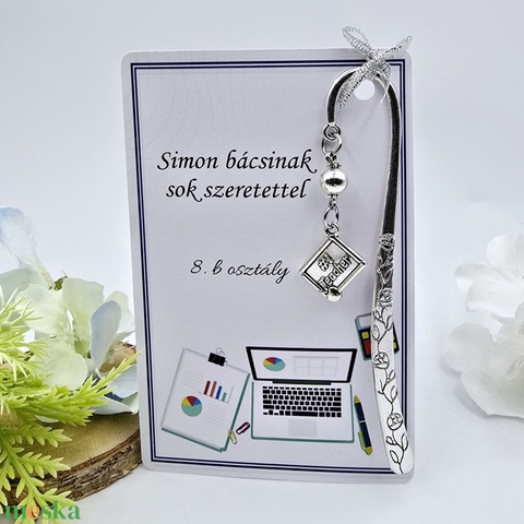 Informatika tanároknak ajándékballagásra, pedagógusnapra tanév végére - Könyvjelző best teacher charmmal, ajándékkártyán