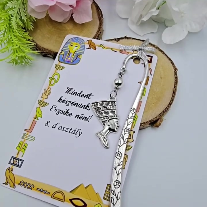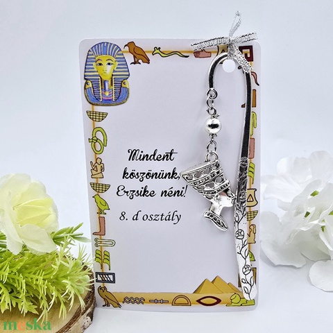 Ajándék történelemtanároknak ballagásra, pedagógusnapra, tanév végére - Könyvjelző fáraó charmmal, ajándékkártyán
