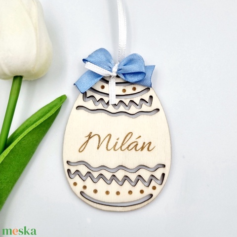 Gravírozott fa húsvéti tojás egyedi névvel. Húsvéti ajándék gyerekeknek.