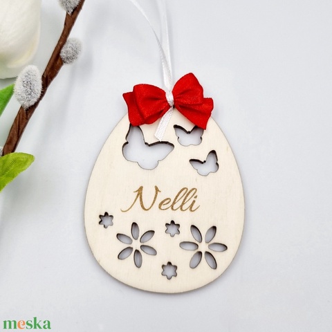Gravírozott fa húsvéti tojás egyedi névvel. Húsvéti ajándék gyerekeknek.