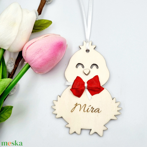 Gravírozott fa húsvéti csibe egyedi névvel. Húsvéti ajándék gyerekeknek.