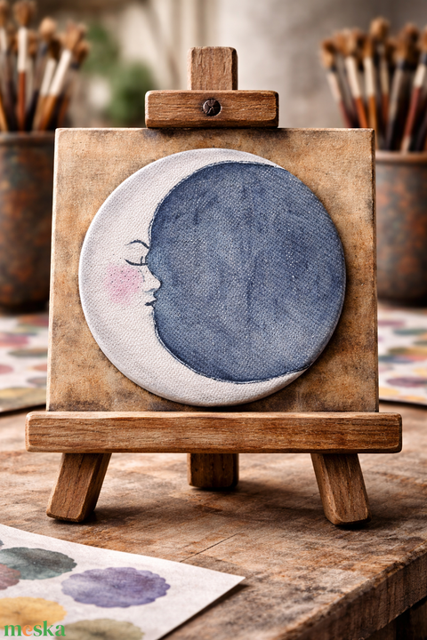 Pasztell mini festmény hűtőmágnes – kézzel festett, natúr vászon