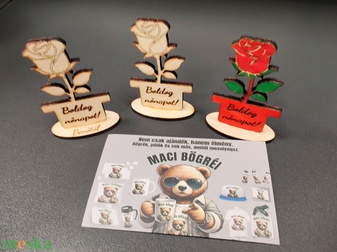 Gravírozott fa rózsa – Boldog nőnapot – egyedi névvel kérhető – nőnapi ajándék
