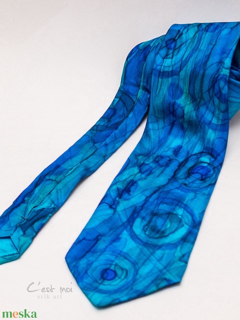 Kék kézzel festett selyem nyakkendő