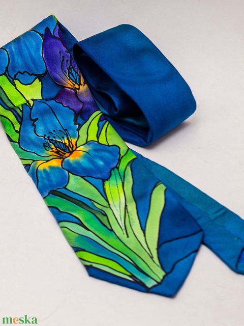 Kék íriszes kézzel festett selyem nyakkendő