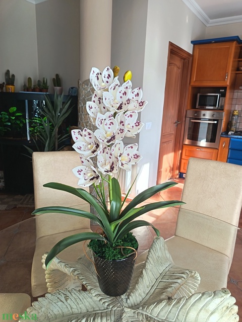 - Anyag/Összetevő kerámiakaspó, izlandi zuzmó, polifoam anyagú orchidea, gumis anyagú levél, tűzőhab