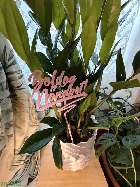 Tedd még különlegesebbé a nőnapi ajándékot ezzel az elegáns, növénybe szúrható „Boldog Nőnapot” felirattal! Modern, kézzel írott stílusú betűtípusa és letisztult megjelenése tökéletes kiegészítője virágcsokornak, cserepes növénynek vagy ajándékdoboznak.
