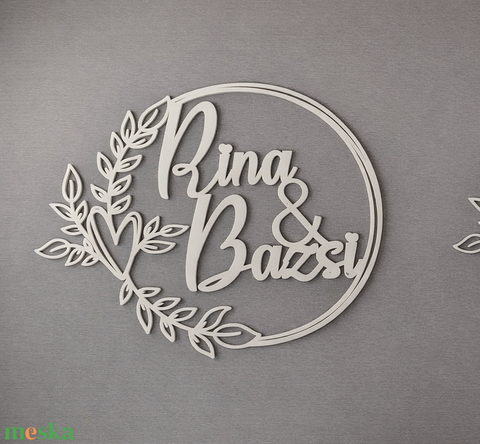 Egyedi évfordulós névtábla kör formában, amelyet a pár neveivel, a házassági évforduló dátumával vagy bármilyen személyes felirattal készítünk el. Ez a személyre szabható kör alakú dekoráció tökéletes ajándék évfordulóra: falra akasztva, polcra állítva vagy keretbe téve a közös évek gyönyörű emléke. A kör forma időtlen eleganciát sugároz, amely a kapcsolat örökérvényű voltát szimbolizálja.