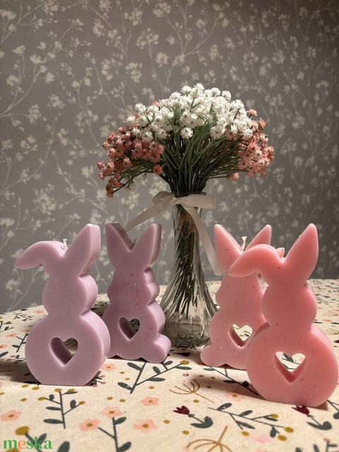 Szójaviaszból készült 12*6 cm-es nyuszik. Más színben is kérhető.