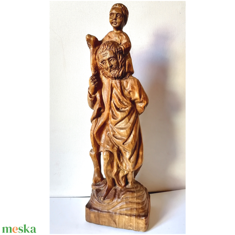 Vintage faragott Szent Kristóf szobor nyakában a kis Jézussal