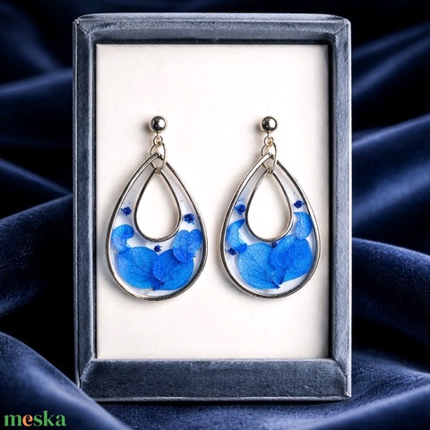 Éjkék hortenziás fülbevaló