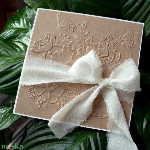 3D domborított (embossed) esküvői meghívó virágos mintával.