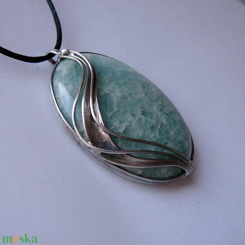 45 cm hosszú, nikkelmentes zárral ellátott szaténzsinórra akasztottam. A zsinór hosszát igény szerint méretre igazítom.