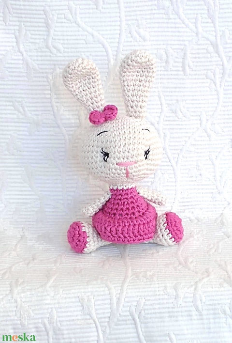Nyuszi lány - pink ruhás - horgolt marokállat