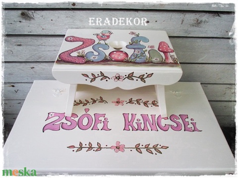 gyerekszoba bútorok, romantikus antikolt festéssel készült fa ajándéktárgyak a provence-i stílus jegyében