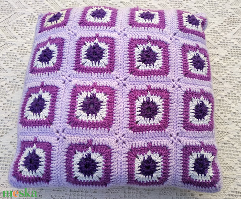 Elején horgolt, hátulján kötött díszpárna. Mérete: 35 cm x 35 cm. Négy összeillő darab van. Az ár 1 db-ra vonatkozik.