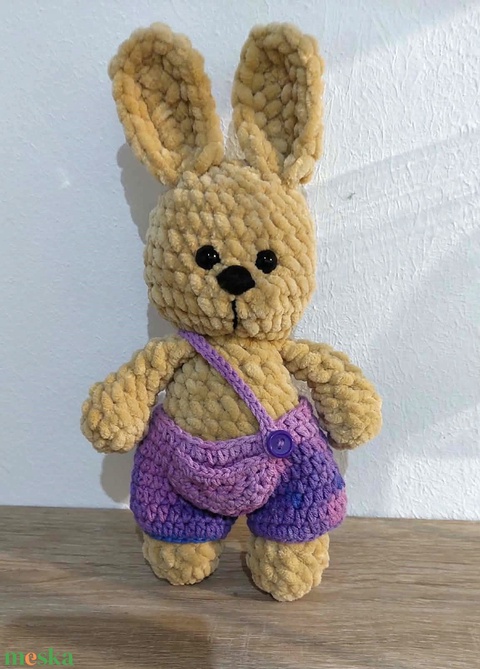 - Anyag/Összetevő plüss fonal, pamut fonal, műanyag biztonsági szem, műanyag gomb, mosható tömőanyag