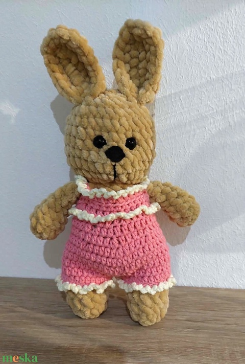 - Anyag/Összetevő plüss fonal, pamut fonal, műanyag biztonsági szem, műanyag gomb, mosható tömőanyag
