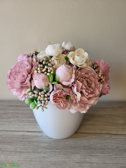 - Anyag/Összetevő kerámia kaspó, tűzőhab, selyemvirágok