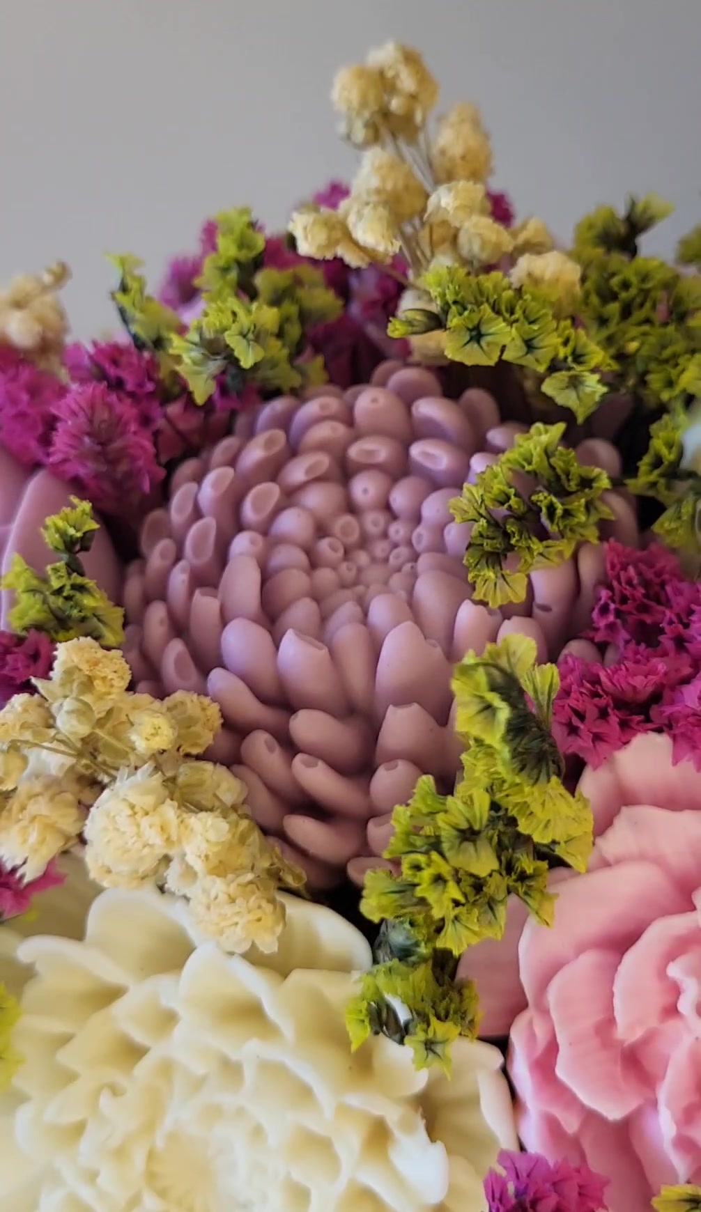 - Anyag/Összetevő szappan alap, hurkapálca, tűzőhab, szárított virágok
