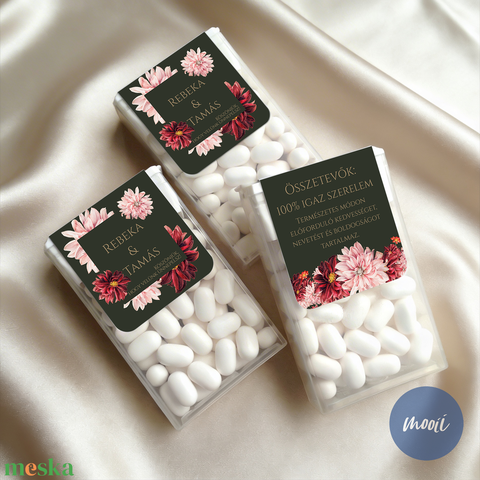 Mentolos cukorka köszönetajándék az esküvőtökre - zöld, elegáns, virágos minta