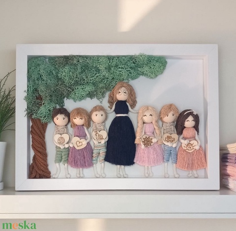Búcsúztató ajándék óvónőnek – Személyre szabható makramé 3D kép ballagó ovisokkal (21x30 cm)