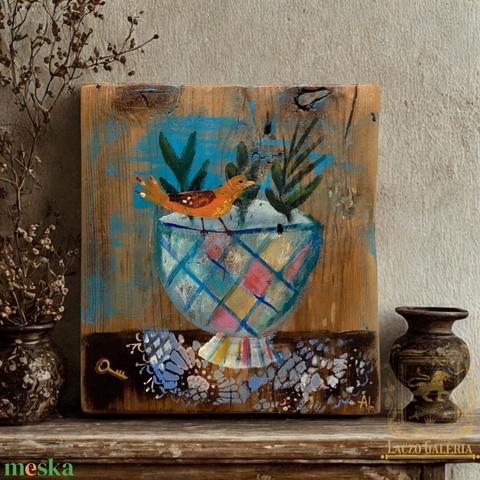 Kerti emlék - Rusztikus Fatábla, Ajándék ötlet - Egyedi Falidísz, Madár, virág