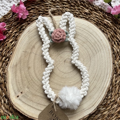 Makramé nyuszi fali dekoráció/ajtó kopogtató – tavaszi, húsvéti dekoráció