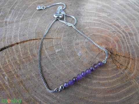 Láncos ametiszt karkötő, acél szerelékkel