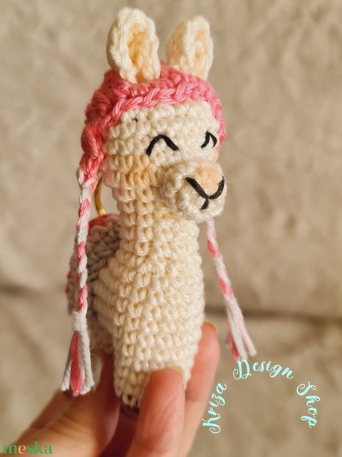 Kézműves horgolt kabalafigurás kulcstartó - Mini láma (Candy)