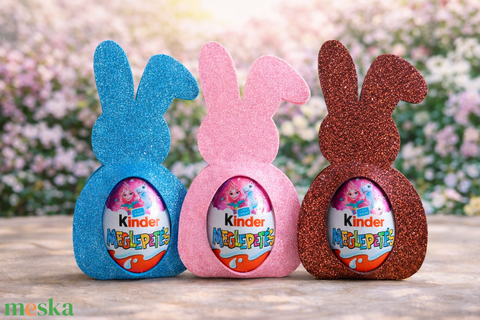 Ragyogó nyusziforma, ideális Kinder csokihoz vagy apró édességhez. Tedd még varázslatosabbá az ünnepeket ezzel az aranyos, csillogó csokihordozóval! 🐰💛